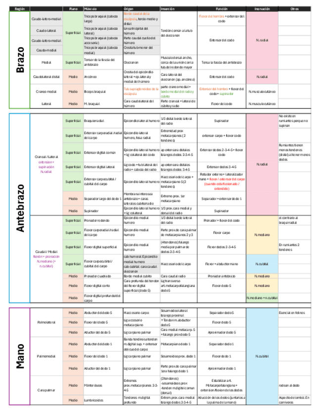 Tabla de músculos del cuello, extremidad anterior, espalda y masticadores. Para ver los dibujos ir a MIOLOGIA - Dibujos