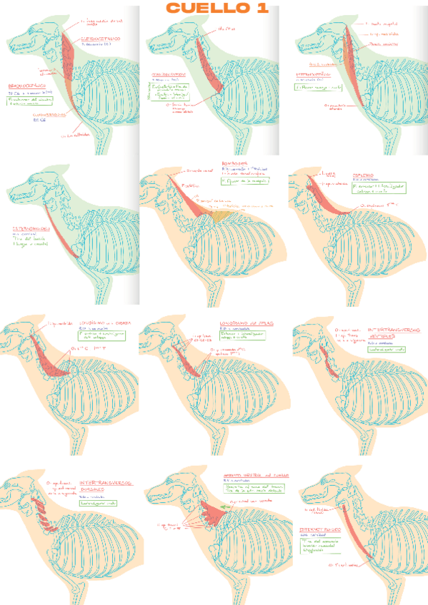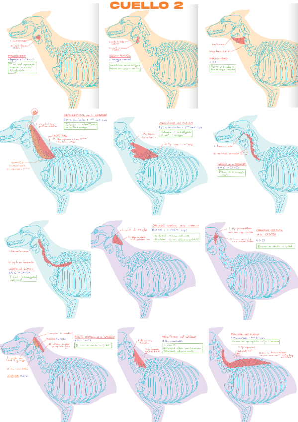 Dibujos de los músculos del cuello, extremidad anterior y espalda. Para ver la tabla ir a "MIOLOGIA - Tabla de músculos" en mis apuntes