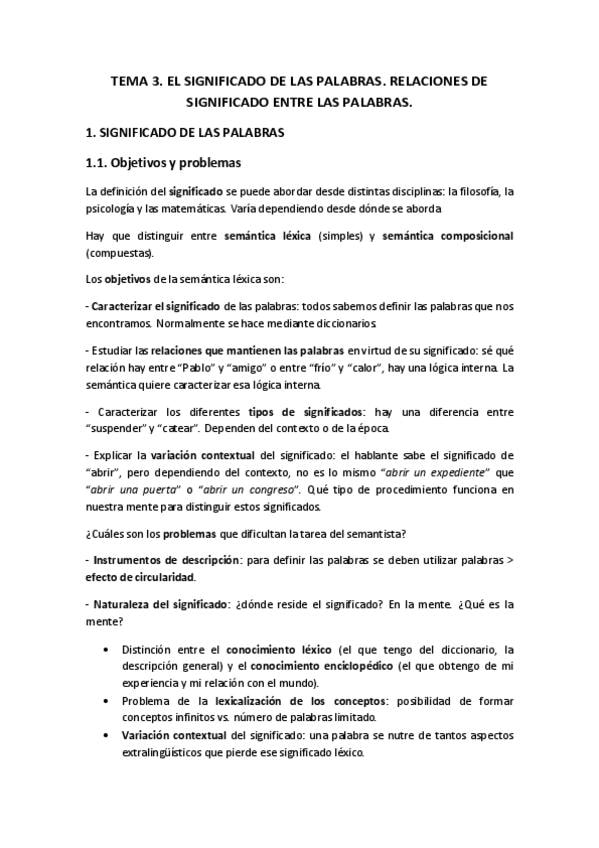 Apuntes completos Tema 1: El léxico y su estudio: lexicología, lexicografía, semántica léxica, morfología léxica. El concepto de palabra