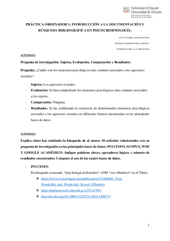 He publicado nuevos practicas de 1º Introducción a la Criminología: Práctica Bloque Psicología Criminología