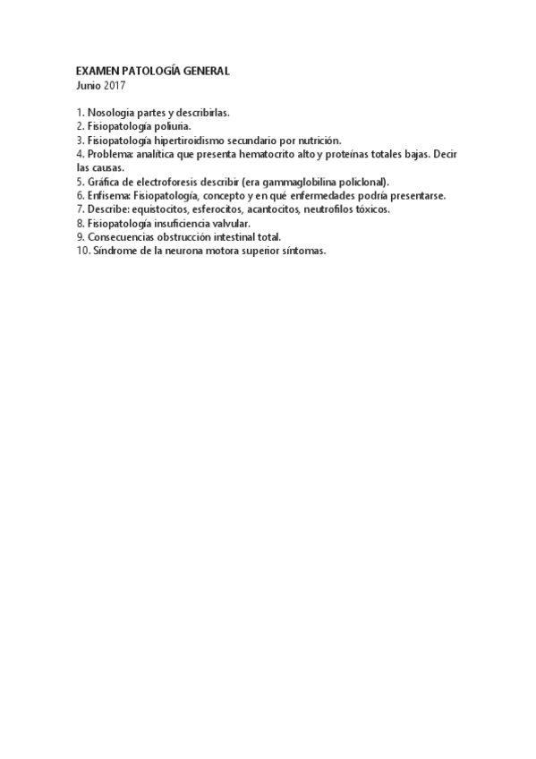 He publicado nuevos examenes de 2º Patología General: EXAMEN PATOLOGÍA GENERAL junio 2017.pdf