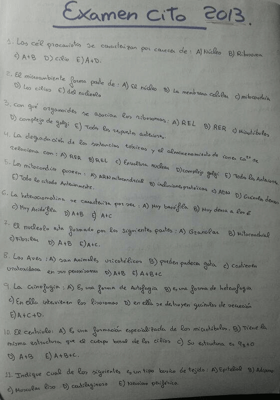 He publicado nuevos examenes de 1º Citología e Histología: Examen 2013