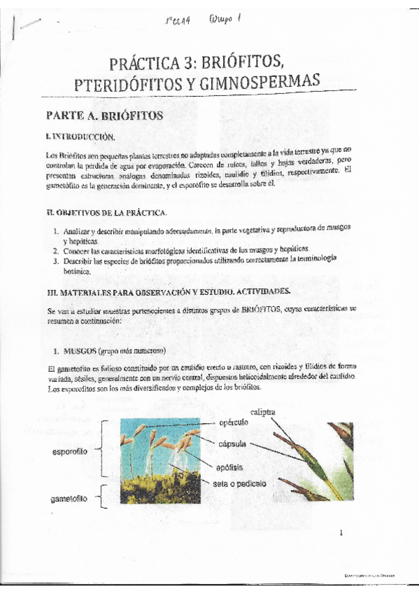 Primera parte de la práctica 3 de botánica: briofitos pteridofitos y gimnospermas.