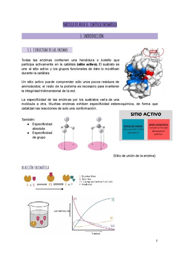 Apuntes, cuestionario y ejercicios de la Práctica de Aula 2: Cinética enzimática.