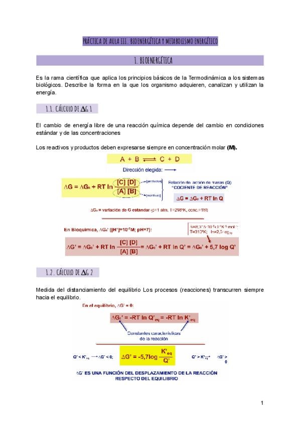 Apuntes, cuestionario y ejercicios de la Práctica de Aula 3: Bioenergética y metabolismo energético.
