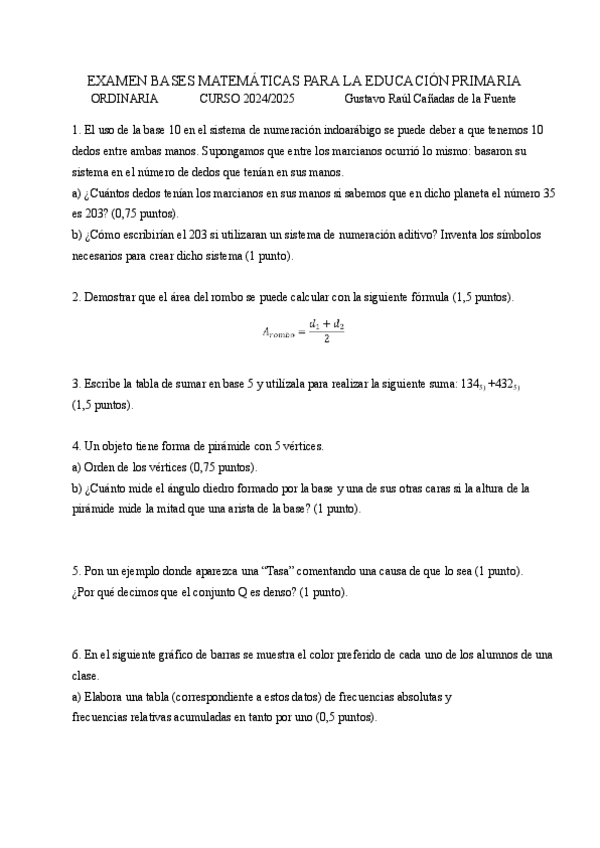He publicado nuevos examenes de 1º Bases Matemáticas Para la Educación Primaria: EXAMEN-MATES-ORDINARIA-2425.pdf