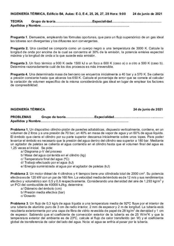He publicado nuevos apuntes de 2º Ingeniería Térmica: Exámenes años anteriores