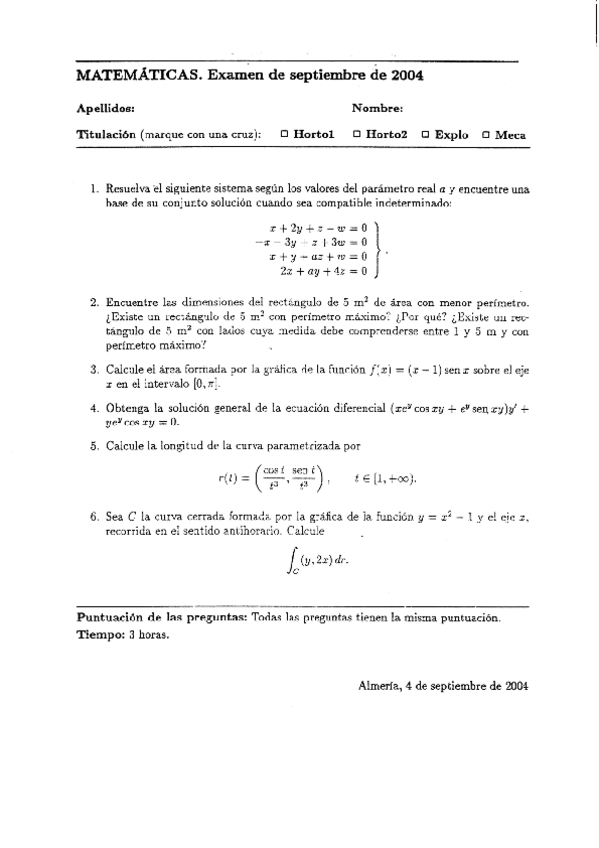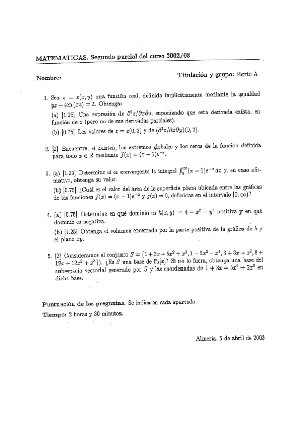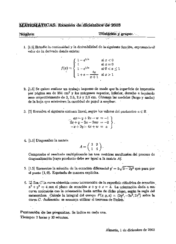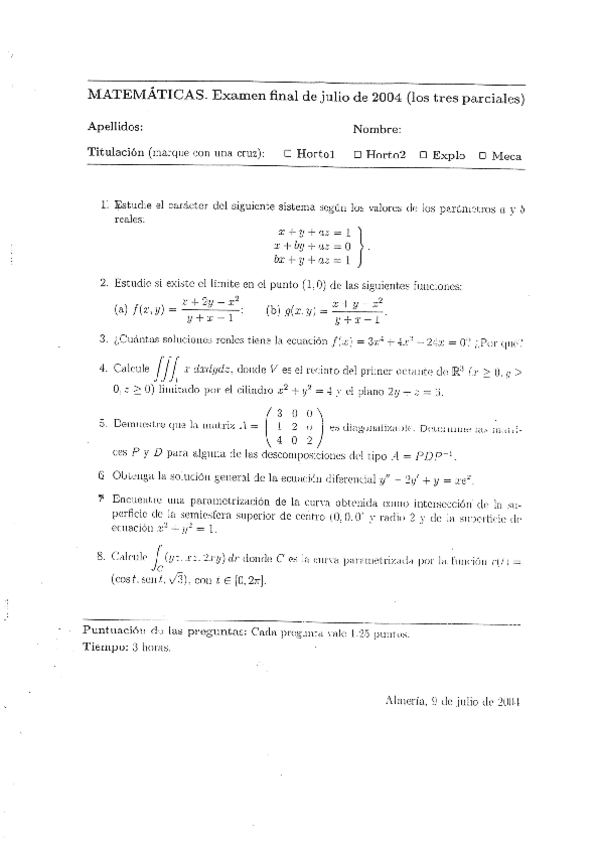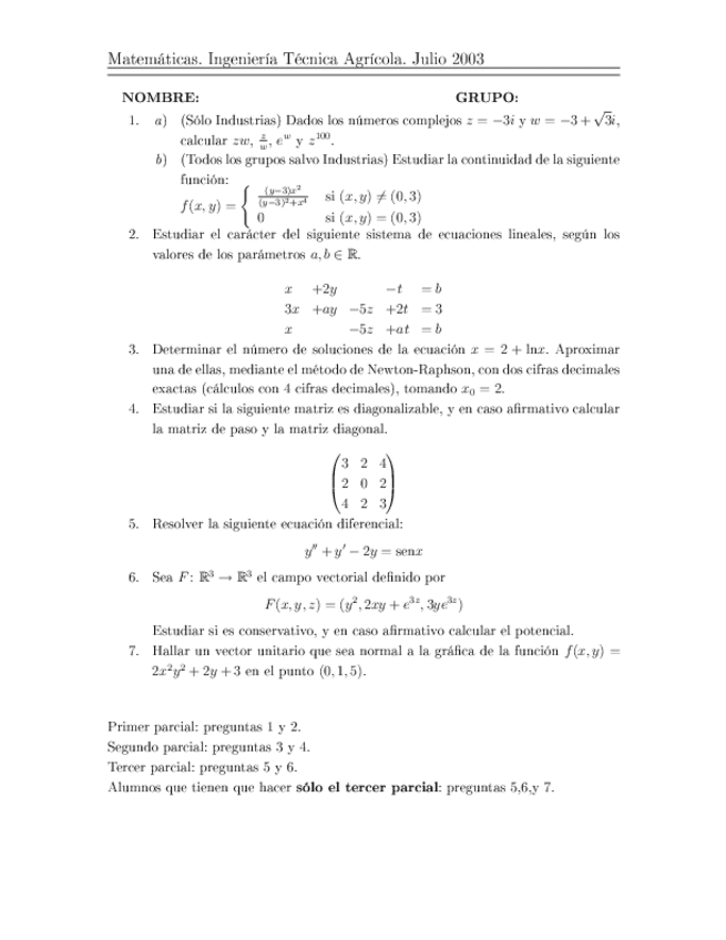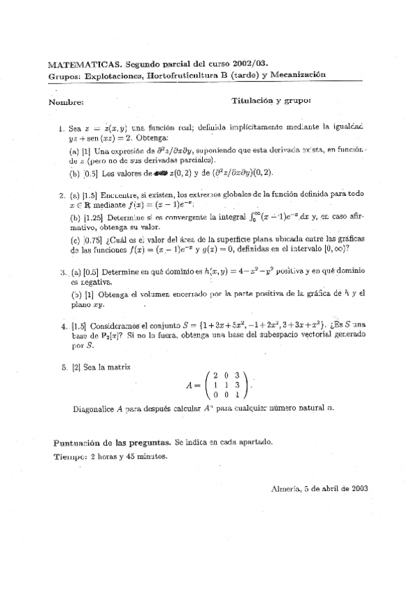 He publicado nuevos examenes de 1º Matemáticas Aplicadas a las Ingenierías Agrícolas: 20030405MATEMATICASITAB.pdf