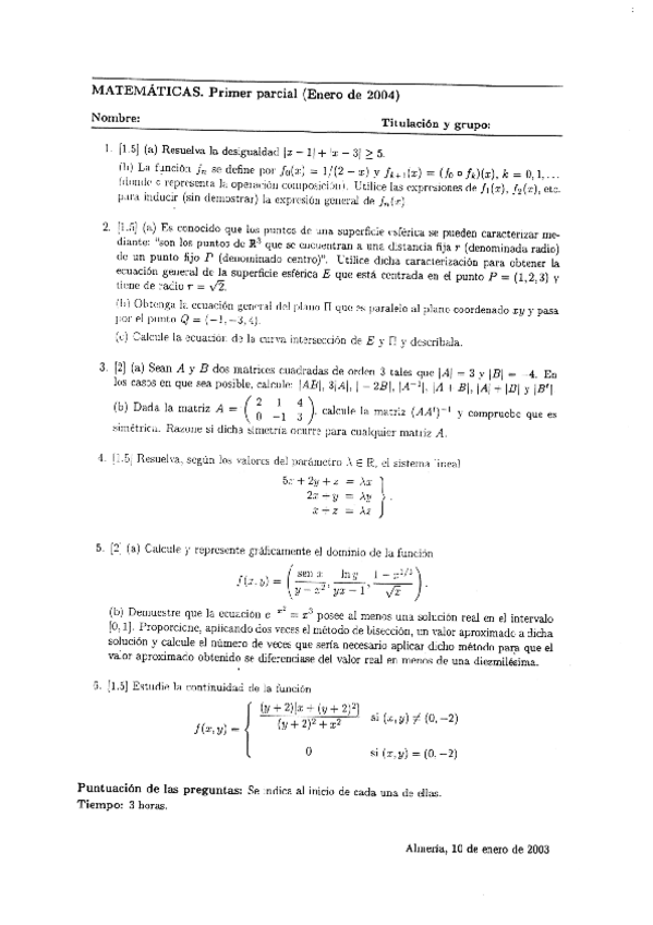 He publicado nuevos examenes de 1º Matemáticas Aplicadas a las Ingenierías Agrícolas: 20040110MATEMATICASITA1oPARCIAL.pdf