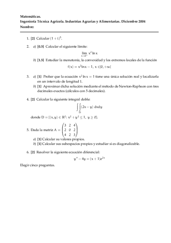 He publicado nuevos examenes de 1º Matemáticas Aplicadas a las Ingenierías Agrícolas: 20040300MATEMATICASITA2oPARCIAL.pdf
