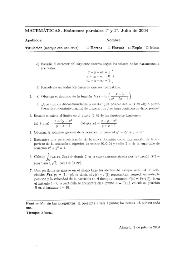 He publicado nuevos examenes de 1º Matemáticas Aplicadas a las Ingenierías Agrícolas: 20040709MATEMATICASITA1o3oPARCIAL.pdf