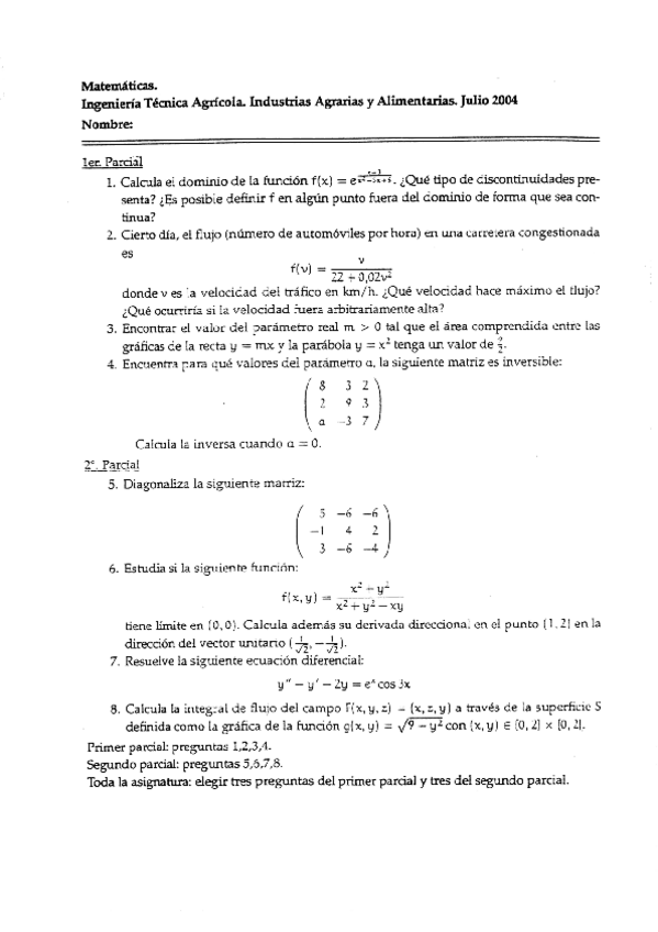 He publicado nuevos examenes de 1º Matemáticas Aplicadas a las Ingenierías Agrícolas: 20040709MATEMATICASITA3oPARCIAL.pdf