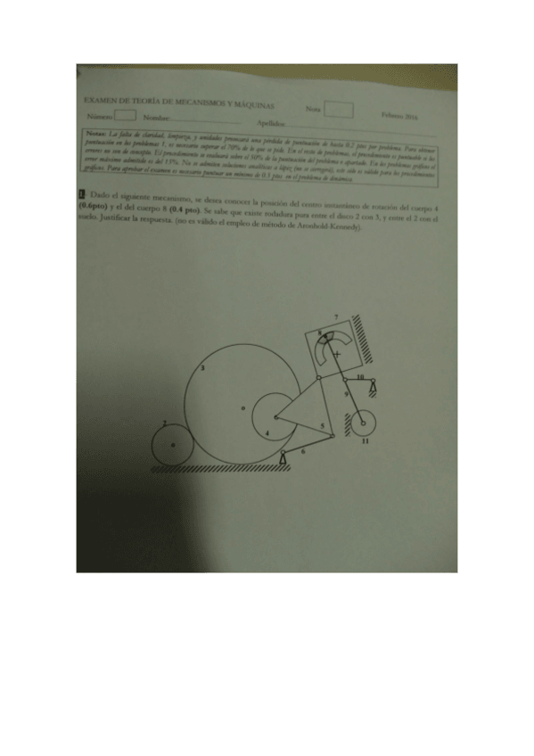 He publicado nuevos examenes de 2º Teoría de Mecanismos y Máquinas: Examen TMM febrero 2016.pdf