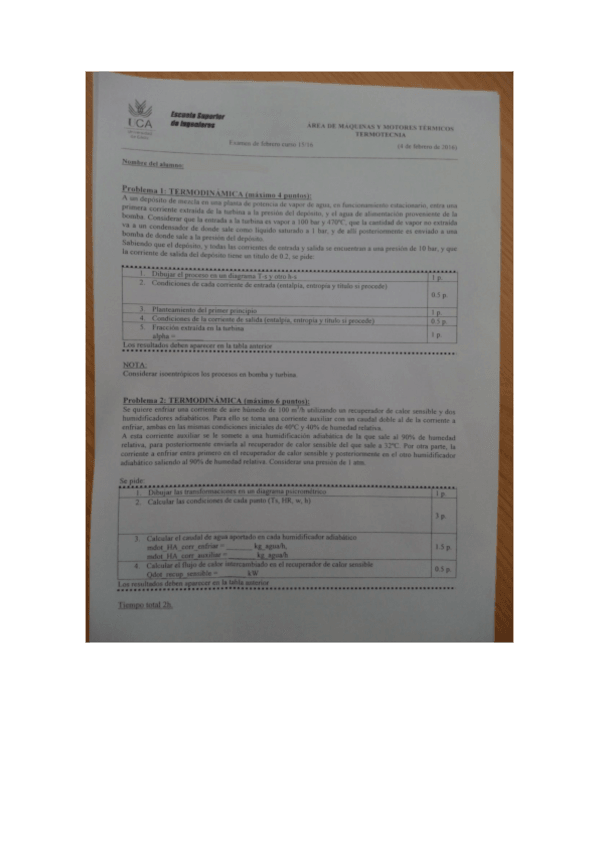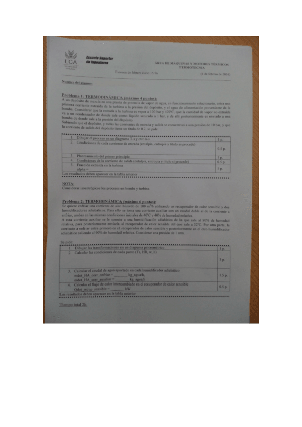 He publicado nuevos examenes de 2º Termotecnia: Examen termodinamica febrero 16.pdf