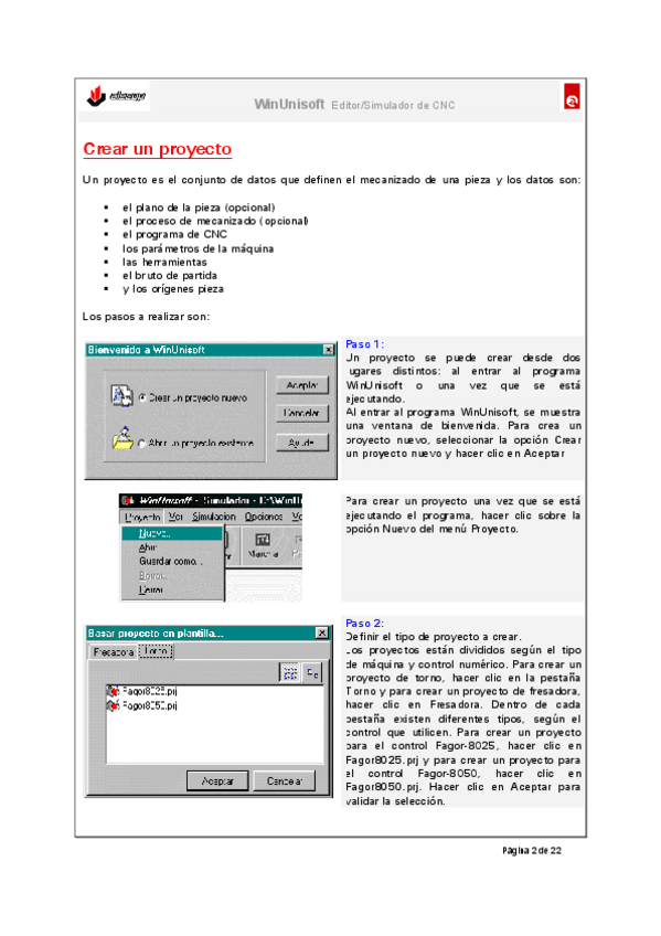 Manual para aprender a usar el programa de CNC "WinUnisoft"