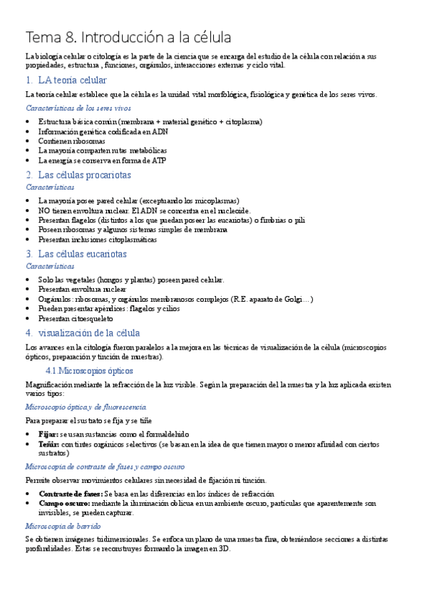 Unidad 3. Organización celular