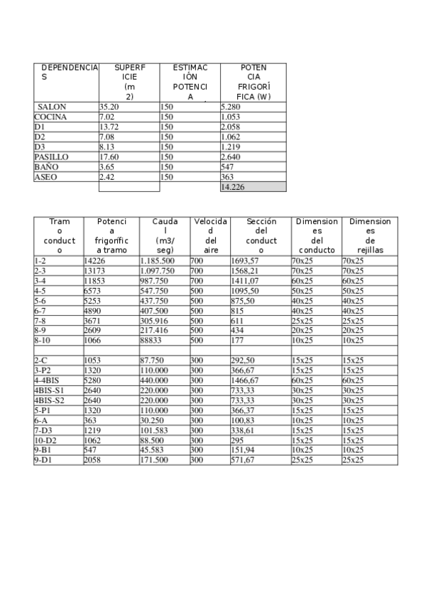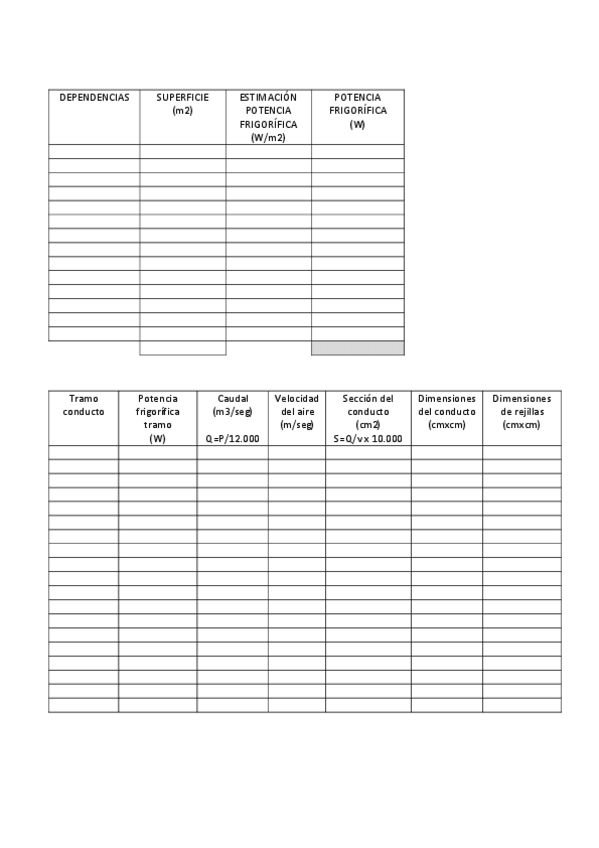 Tabla Cálculo Climatización