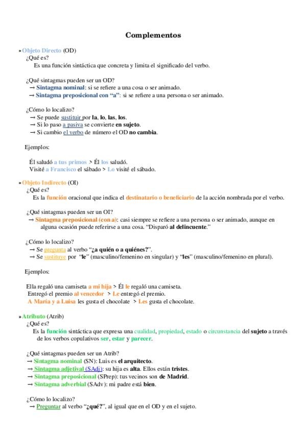Complementos para oraciones.