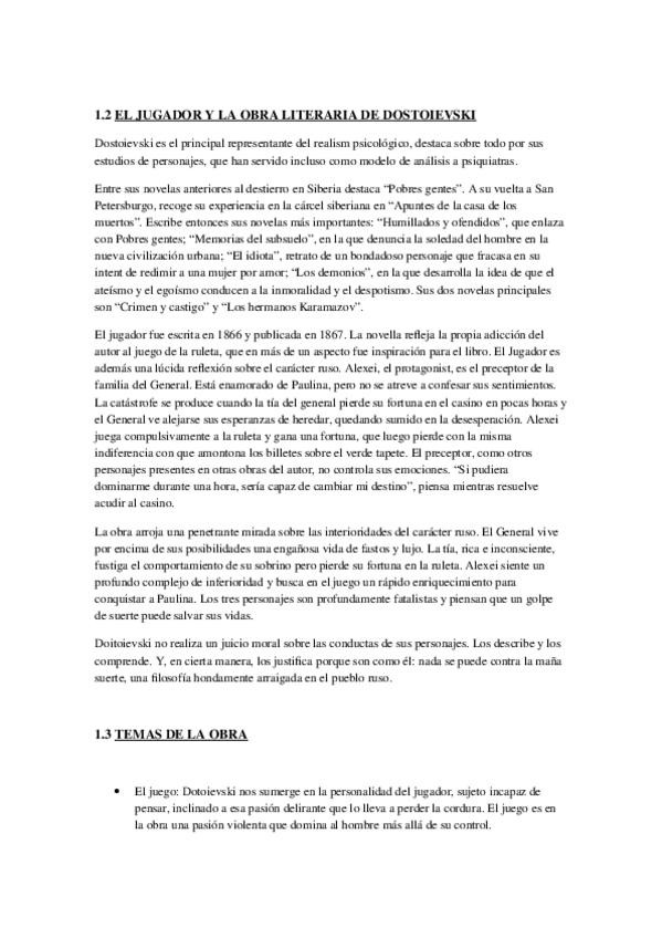 He publicado nuevos apuntes de Lengua Castellana y Literatura II: 5º Tema - El jugador - Dostoievski.docx