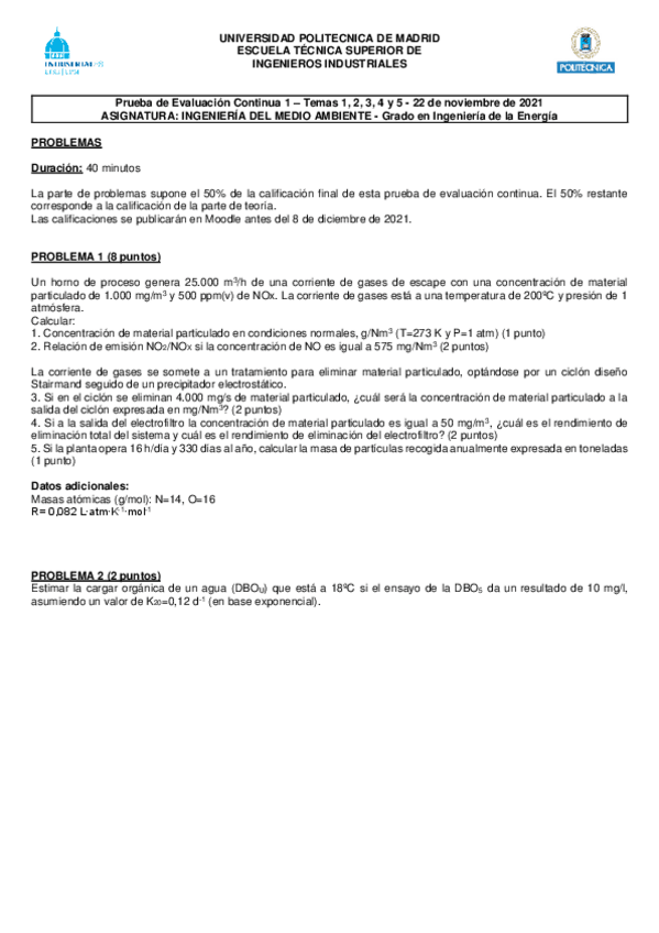 He publicado nuevos examenes de 3º Ingeniería del Medio Ambiente: PEC 2 2021