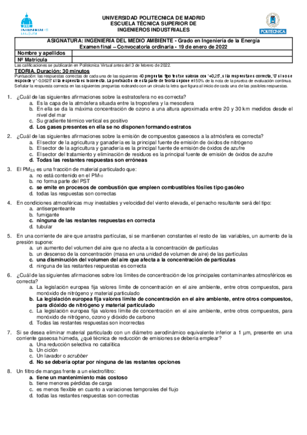 He publicado nuevos examenes de 3º Ingeniería del Medio Ambiente: Final 22