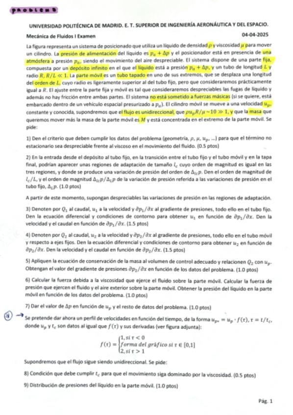 problema de examen resuelto de movimiento unidireccional