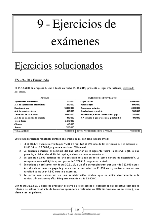 8 examens de contabilitat 1, asentaments + balanç