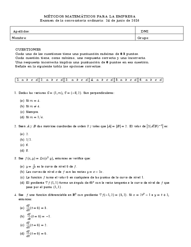 He publicado nuevos examenes de 1º Métodos Matemáticos Para la Empresa: EXAMENES FINALES 2015 y 2016