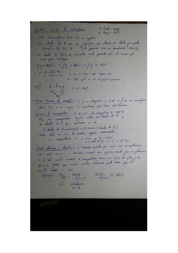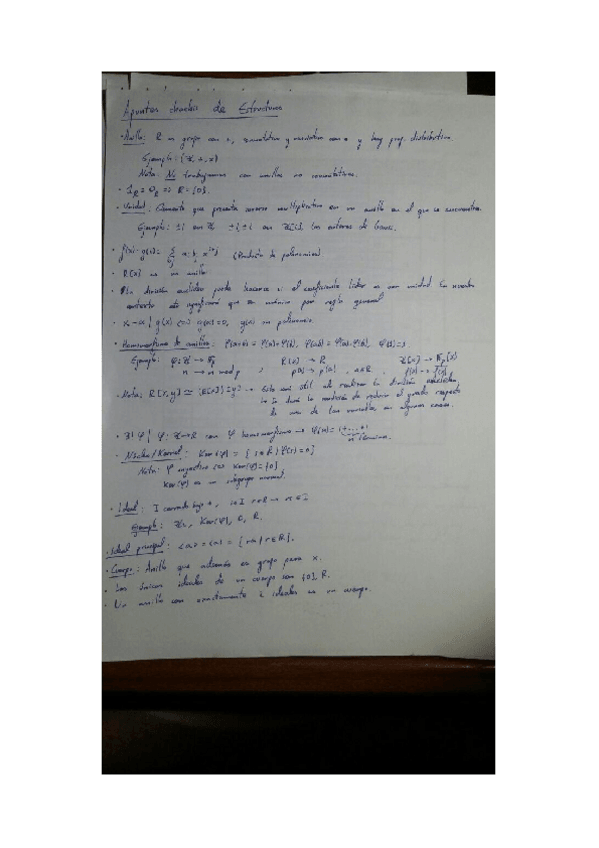 Resumen los teoremas y definiciones más importantes de la asignatura, e incluyen algunos ejemplos resueltos al final. Me he basado en Algebra, de M. Artin, una auténtica maravilla que os recomiendo a tope.