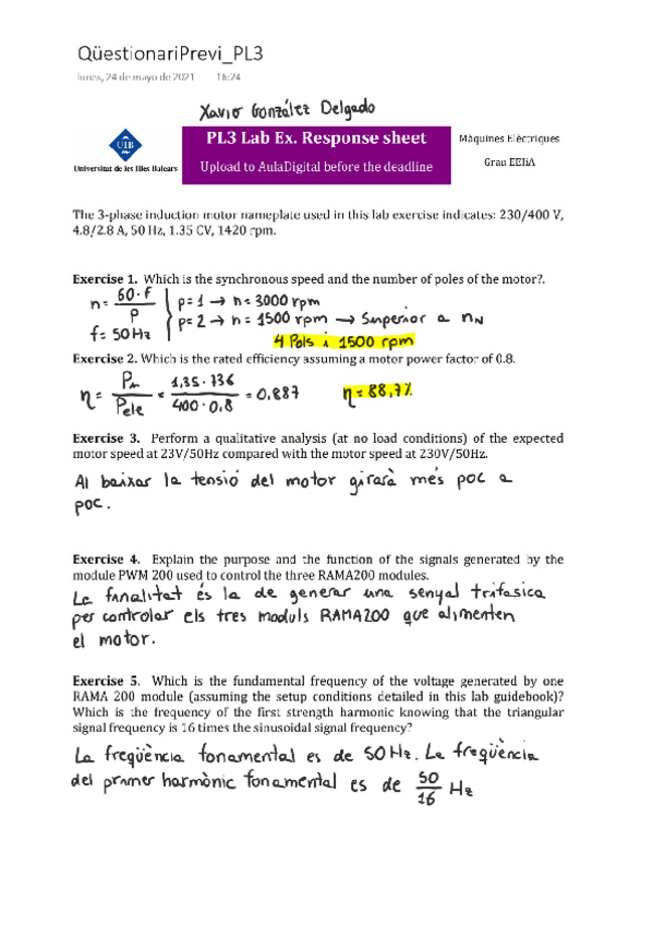 He publicado nuevos practicas de 3º Máquinas Eléctricas: Qüestionario Previo Máquinas Eléctricas