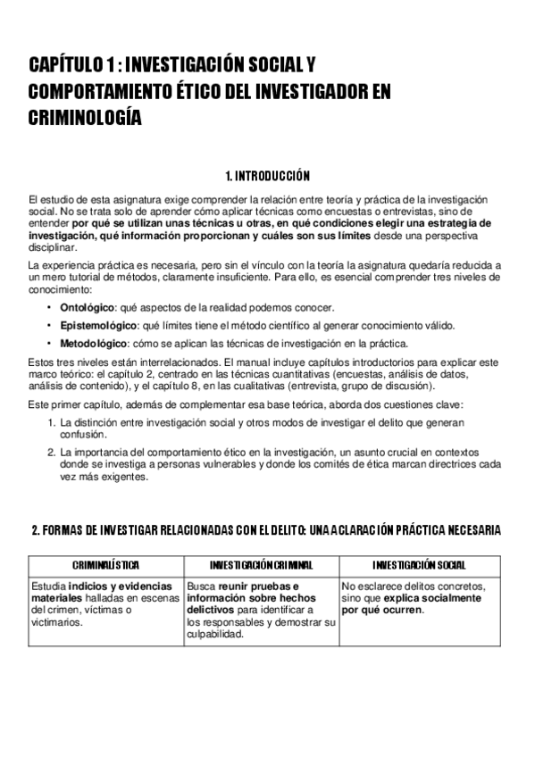 INVESTIGACIÓN SOCIAL Y COMPORTAMIENTO ÉTICO DEL INVESTIGADOR EN CRIMINOLOGÍA 1º cuatri