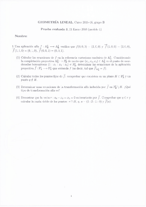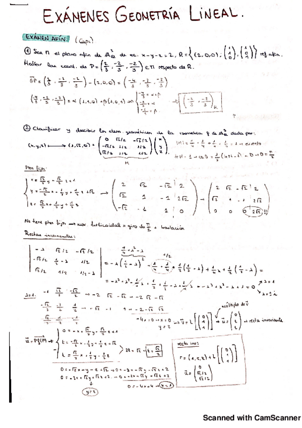 Examenes Geometría Lineal