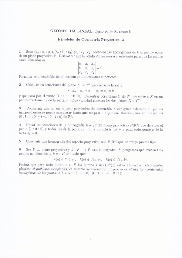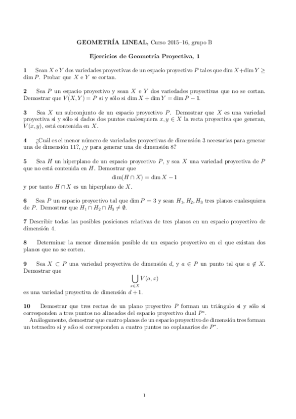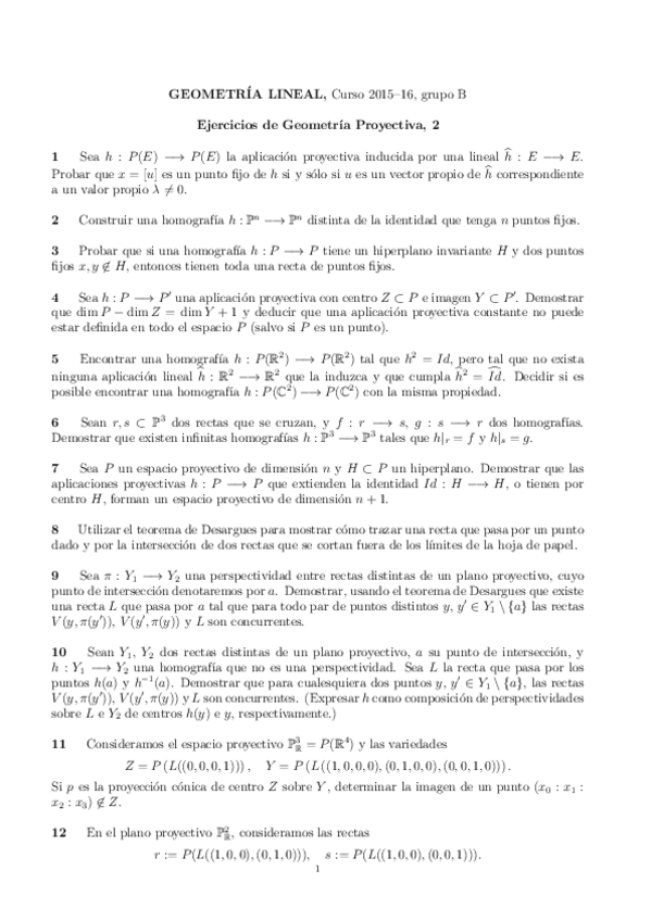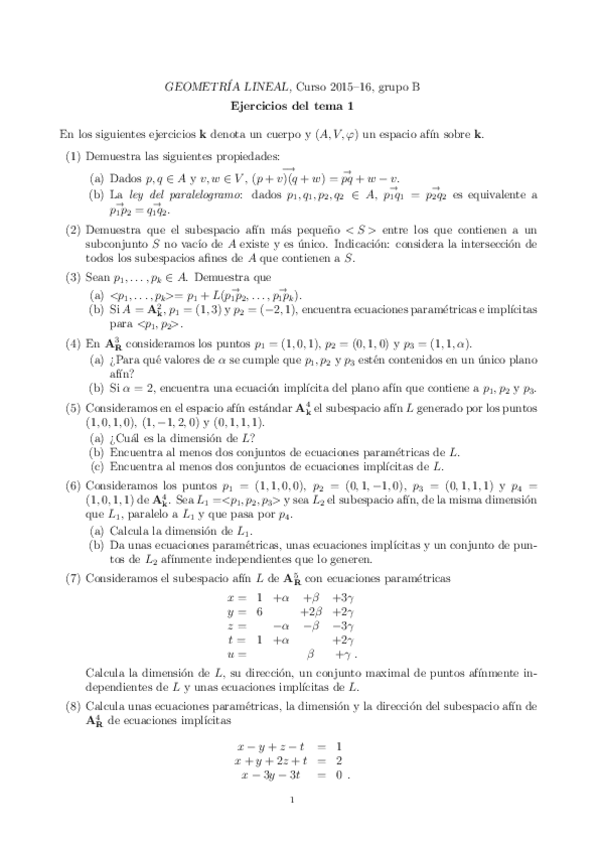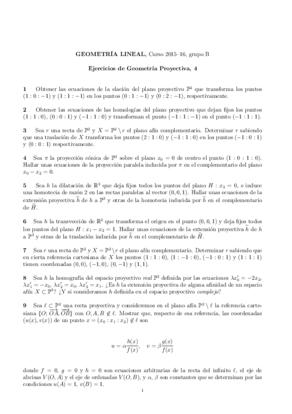 Ejercicios Geometría Lineal
