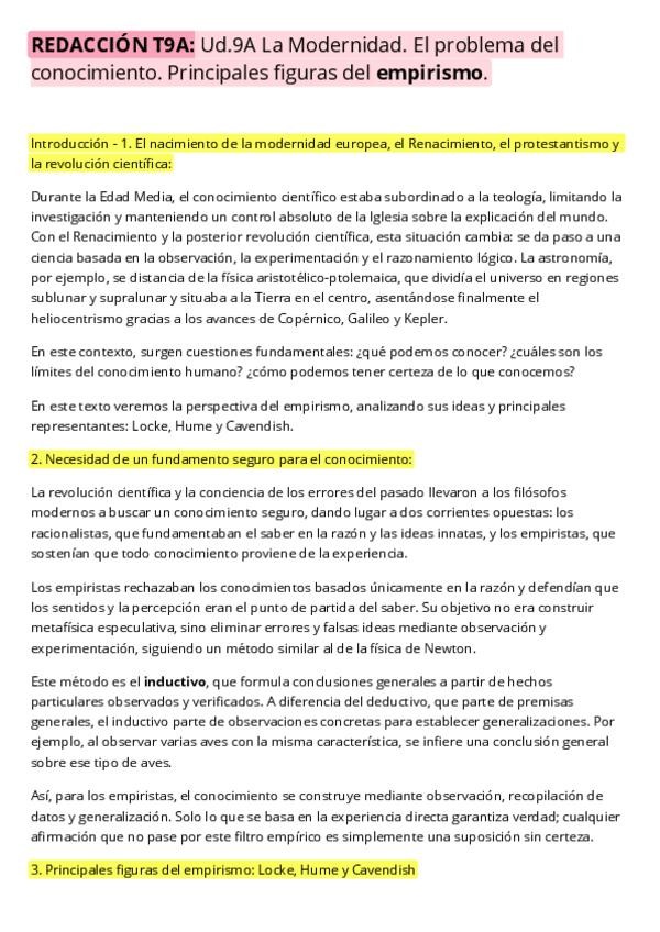 resumen Filosofía T9B Redacción Actualización Emipistas, la modernidad, David Hume y Locke
