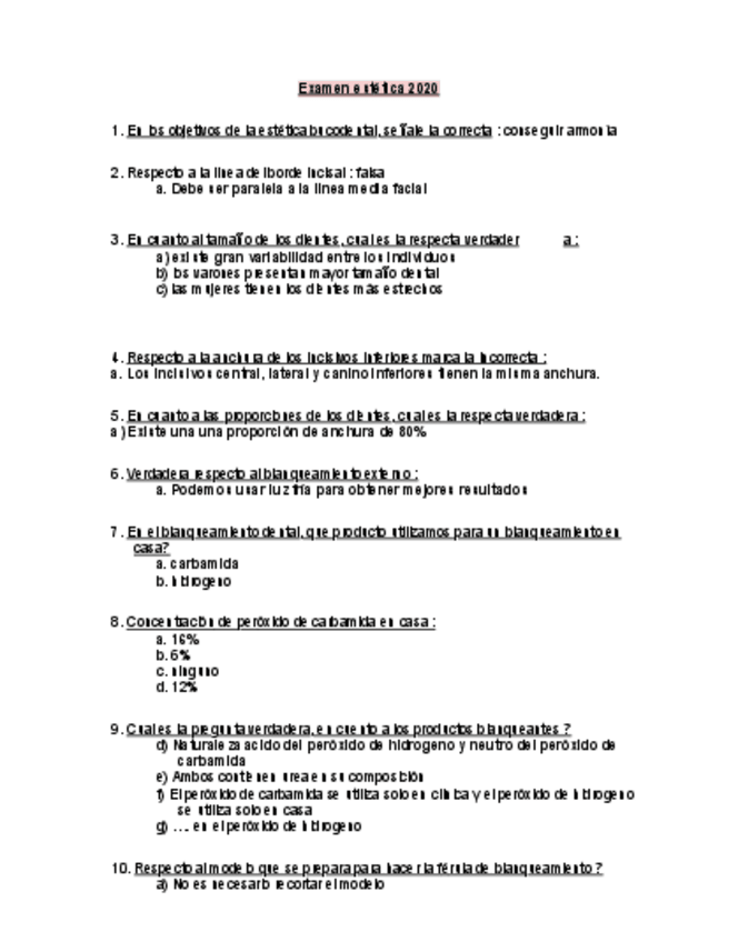 Estética Exámenes