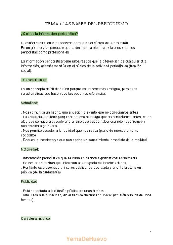 Resumen de los apuntes dictados en clase y del powerpoint sobre el Tema 1 Las Bases del Periodismo.
