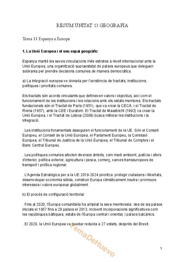 Resumen del tema 11 que va junto con el de todo el temario de geografía de segundo de bachiller en valenciano.