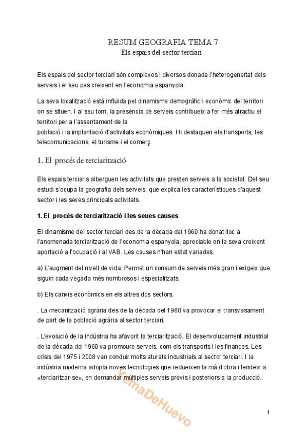 Resumen del Tema 7 de Geografía que va junto con el resumen de todo el temario de Geografía de segundo de bachiller en valenciano.