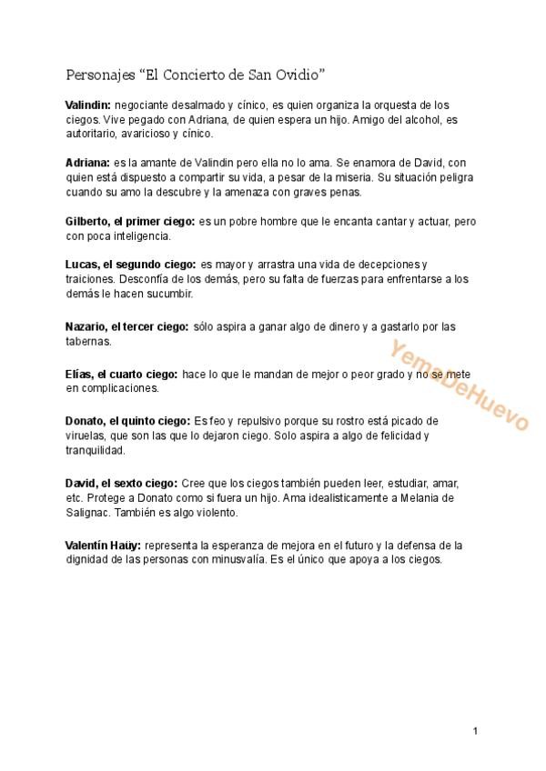 Breve descripción de los personajes de "El Concierto de San Ovidio".