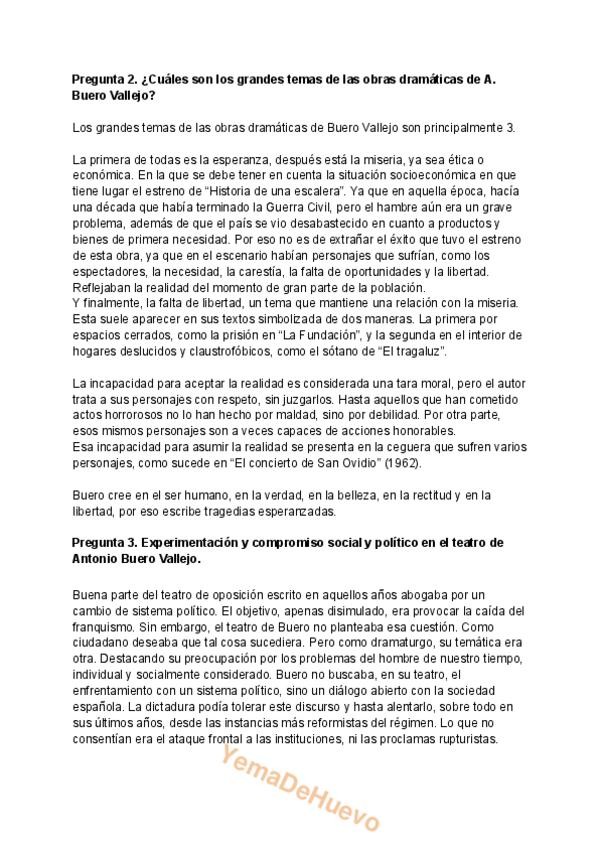 Cuatro preguntas sobre teoría de "Historia de una Escalera" de Antonio Buero Vallejo.