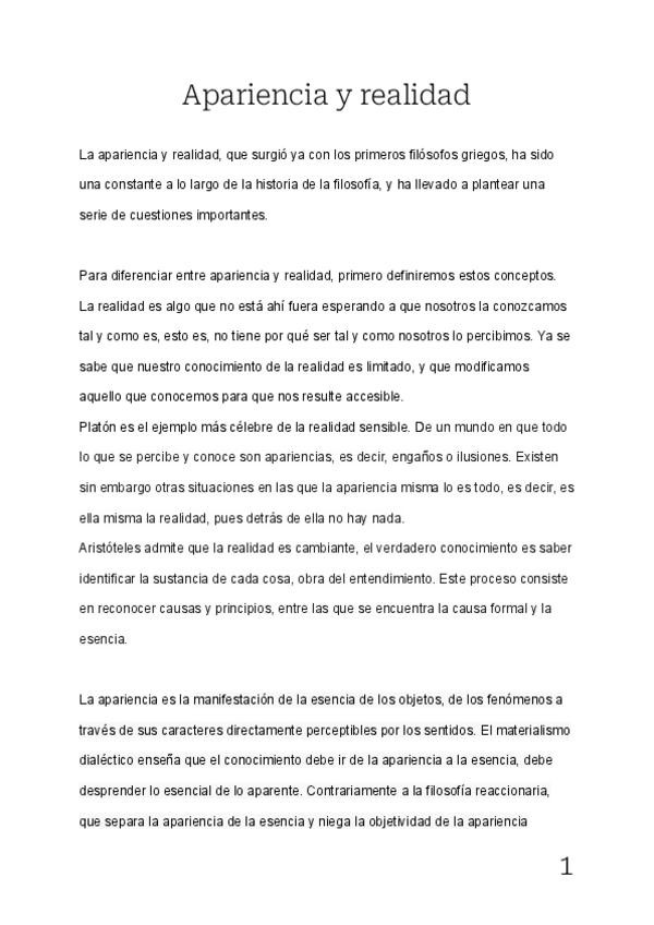 Comparación entre la apariencia y la realidad con Platón, Aristoteles y Nietzsche, entre otros.