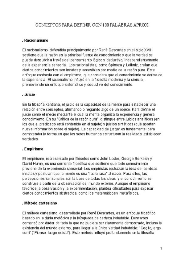 Racionalismo, juicio, empirismo, método cartesiano, giro copernicano, dogma e intuición y deducción filosófica en 100 palabras aproximadamente.