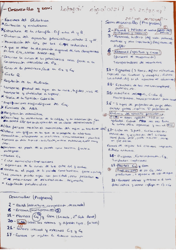 13 - APARATO FOTOSINTÉTICO, 14 - COOPERACIÓN ENTRE ECOSISTEMAS, 15 - FOTOFOSFORILACIÓN, 16 - FIJACIÓN DEL CO2, 17 - FOTORRESPIRACIÓN, 18 - PLANTAS C4, 19 - PLANTAS CAM, 20 - SIGNIFICADO FISIOLÓGICO CAM Y C4