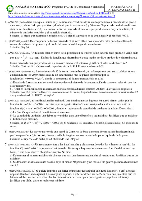He publicado nuevos ejercicios de Matemáticas aplicadas a las Ciencias Sociales II: Problemas-Analisis.pdf