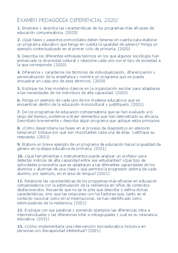 He publicado nuevos examenes de 1º Pedagogía Diferencial: preguntas-examen.pdf