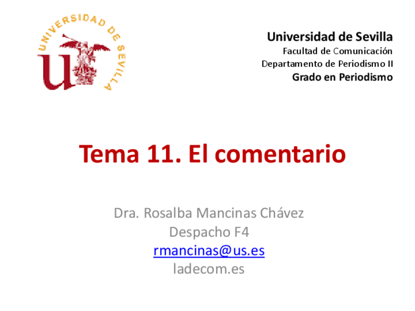 He publicado nuevos apuntes de 2º Géneros y Estilos Periodísticos: Tema 11 El comentario.pdf