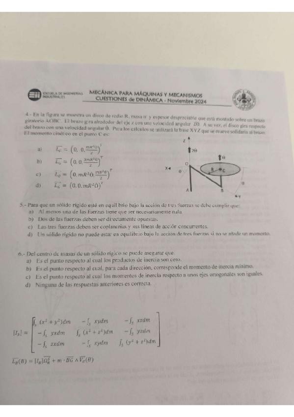 He publicado nuevos examenes de 2º Mecánica Para Máquinas y Mecanismos: Parcial-Dinamica-24-25.pdf