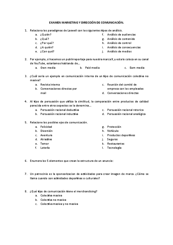 He publicado nuevos examenes de 4º Marketing y dirección de comunicación: EXAMEN-MARKETING-Y-DIRECCION-DE-COMUNICACION.pdf