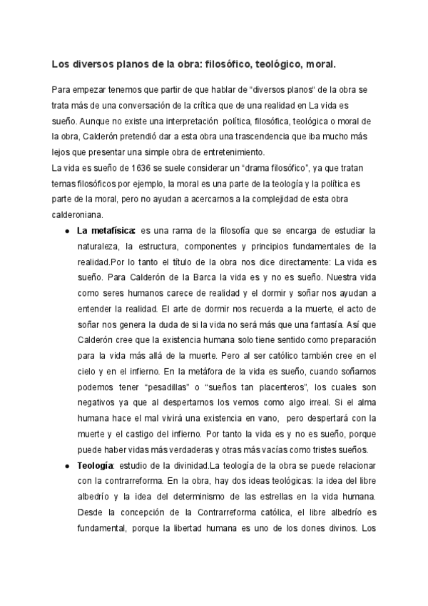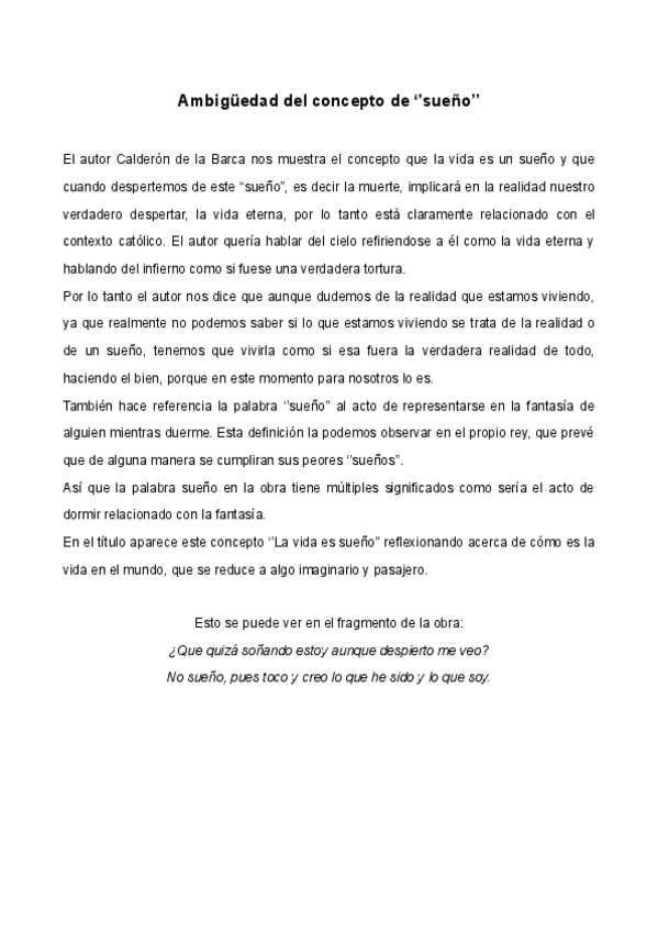 La vida es sueño selectividad