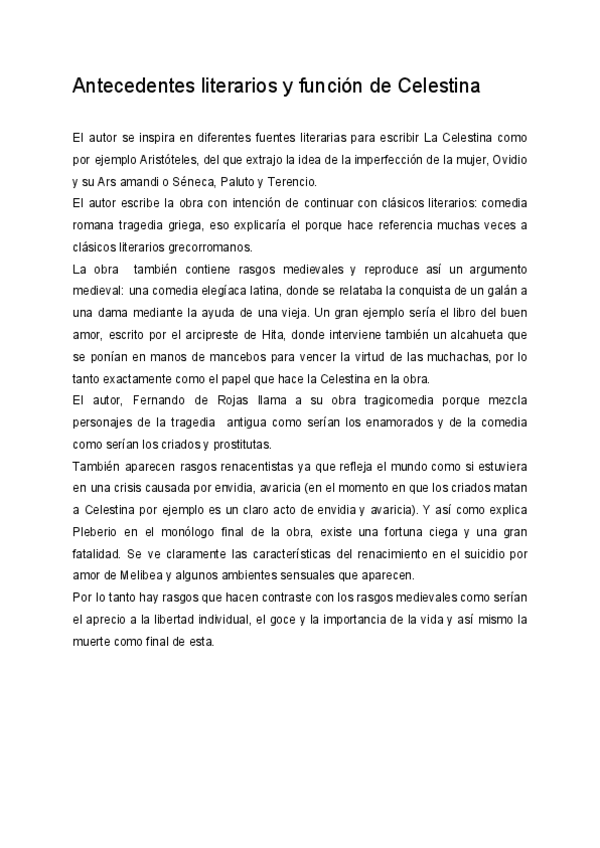 Antecedentes lit. y función de Celestina